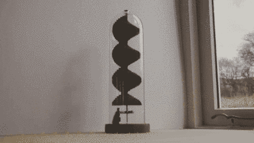 Made from recyclable materials and operating entirely by renewable means, the precision balanced solar engine silently and gracefully turns the helical wing through the day, proving a gentle accompaniment to a more environmentally balanced life.